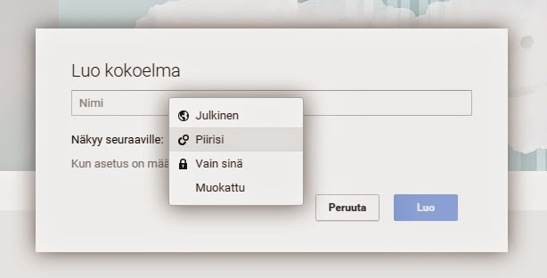 Mielenkiintoinen piirre yritys- ja oppilaitoskäyttäjille Google+ Kokoelmissa on se, että niiden ei välttämättä tarvitse olla julkisia. Voit luoda erilaisia Kokoelmia joko vain itsellesi, piireillesi tai "muokattu"-vaihtoehdon kautta valitsemillesi henkilöille. Näppärä tapa yrityksissä projektimateriaalien kasaamiseen tai opetuksessa pienen materiaalipankin keräämiseksi oppilaille.