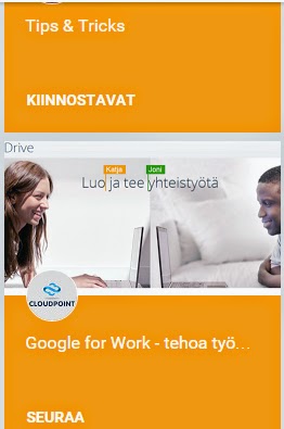Jos löydät muiden Google+ Kokoelmista kiinnostavia aiheita, voit tilata päivitykset omalle Streamillesi klikkaamalla Seuraa.